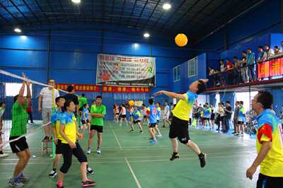 隨著主裁的一聲哨響,氣排球比賽正式開始。本次氣排球比賽以淘汰賽形式進(jìn)行,第一輪由“集團(tuán)領(lǐng)導(dǎo)” 對陣“嘉通無敵隊”、“盛景榮隊”對陣“開心聯(lián)隊”、“克懼隊”對陣“萬方物業(yè)隊”、“勇港隊”對陣 “盛青隊”,兩方的隊員便開始了龍爭虎斗、各施絕技。各隊的參賽隊員都以昂揚的斗志迎接比賽,發(fā)球、起跳、攔網(wǎng)、扣球……各隊比分在裁判員的一次次翻牌中發(fā)生變化。最后,“勇港隊”、“嘉通無敵隊”、“盛景榮隊”、“萬方物業(yè)隊”成為4強(qiáng)隊伍,進(jìn)入半決賽。