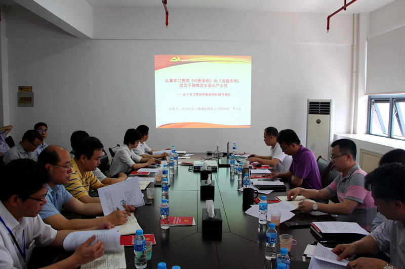 為進(jìn)一步加強(qiáng)廉政文化建設(shè),不斷提高黨員干部廉潔從業(yè)意識(shí),推進(jìn)廉潔從業(yè)教育工作,以黨風(fēng)廉潔建設(shè)新成效促進(jìn)綠港集團(tuán)健康發(fā)展,4月20日上午,綠港集團(tuán)黨委召開學(xué)習(xí)貫徹《中國(guó)共產(chǎn)黨問(wèn)責(zé)條例》和《中國(guó)共產(chǎn)黨黨內(nèi)監(jiān)督條例》(以下簡(jiǎn)稱“兩部條例”)宣講報(bào)告會(huì)暨中心組學(xué)習(xí)擴(kuò)大會(huì)議,會(huì)議由綠港集團(tuán)黨組書記、董事長(zhǎng)楊東主持,經(jīng)開區(qū)紀(jì)工委派駐國(guó)有公司紀(jì)檢組組長(zhǎng)李云岳就“兩部條例”進(jìn)行了宣講,綠港集團(tuán)全體班子成員、集團(tuán)本部中層以上管理人員、子公司領(lǐng)導(dǎo)班子約50人參加會(huì)議。