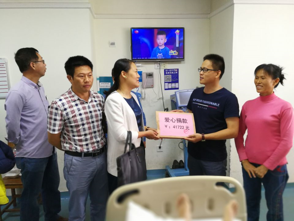 吳海召激動(dòng)地說:“善款有價(jià),愛心無(wú)價(jià)。綠港集團(tuán)和經(jīng)開區(qū)的捐款正體現(xiàn)中華民族團(tuán)結(jié)互助的精神和無(wú)私博愛的優(yōu)良傳統(tǒng),非常感謝所有愛心人士的熱情幫助”。蒙福東副總經(jīng)理讓家屬們?cè)鰪?qiáng)信心,安心照顧好吳海有,有困難及時(shí)告知公司,綠港集團(tuán)一定盡力協(xié)調(diào)解決,能幫就幫。