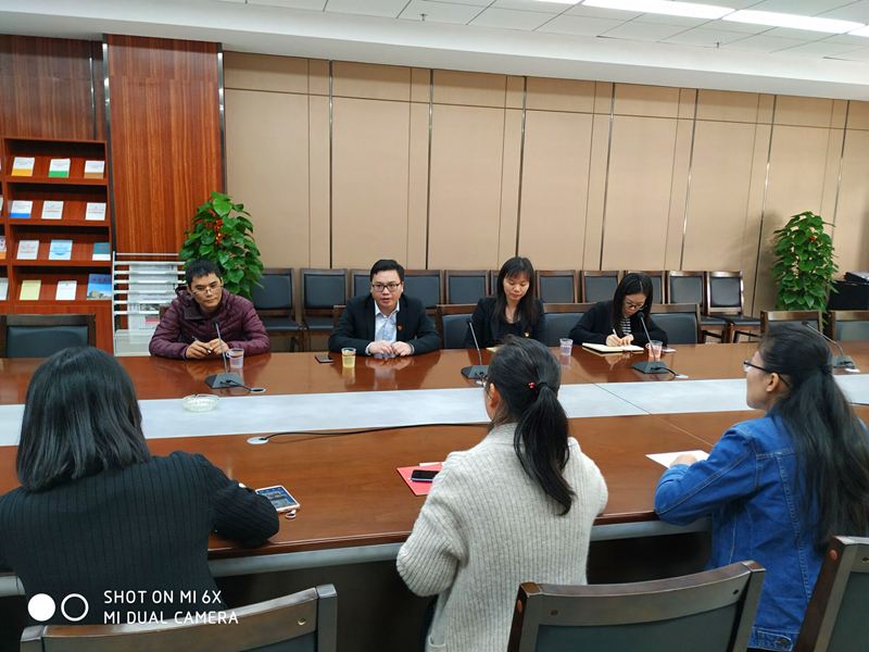 黨群工作局副局長蘇致誠認(rèn)真聽取綠港集團(tuán)黨建示范點(diǎn)建設(shè)工作情況