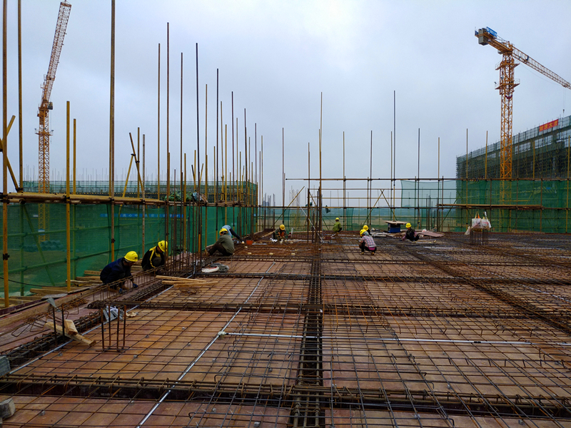 11月19日,南寧空港科技產(chǎn)業(yè)園項目一期工程首批樓棟1#、3#樓以及食堂主體工程順利封頂。日前,工人們趁著大好天氣緊鑼密鼓地進行項目砌體工程及樓面的鋼筋綁扎、模板安裝建設(shè),現(xiàn)場如火如荼,一派繁忙景象。該項目是市委市政府在空港經(jīng)濟區(qū)的重點項目,也是經(jīng)開區(qū)管委會在空港經(jīng)濟區(qū)打造的第一個標準廠房項目。作為綠港集團2018年度重點項目,自今年8月12日正式開工以來,嘉通公司高度重視,精心組織,周密籌劃,堅持“開局就是決戰(zhàn),起步就是沖刺!”的工作態(tài)度,成立了項目“黨員先鋒隊”和“青年突擊隊”,充分發(fā)揮黨組織引領(lǐng)作用。短短不到百日的時間里,項目就取得了部分主體工程封頂?shù)碾A段性成果,朝著整體項目于2020年初全部完工交付使用的目標邁進了堅實的一步。