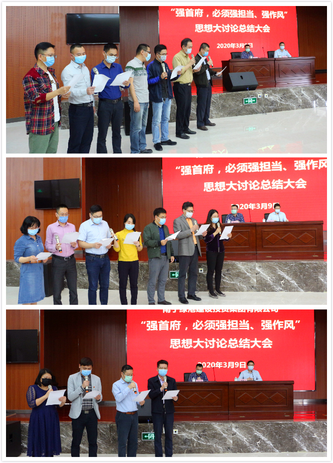 最后,集團(tuán)黨委書記、董事長龔國強(qiáng)對本次思想大討論活動開展情況進(jìn)行了總結(jié)點評,并要求各部門、各子公司認(rèn)真踐行諾言,落實落細(xì)措施,確保取得良好成效。龔書記表示,當(dāng)前疫情形勢依然嚴(yán)峻復(fù)雜,全國各地都在做好疫情防控的前提下,出臺了一系列政策措施,搶開局、穩(wěn)經(jīng)濟(jì)、促發(fā)展。綠港集團(tuán)在疫情防控的關(guān)鍵時刻召開這次總結(jié)會,就是要進(jìn)一步營造一心一意謀發(fā)展的濃厚氛圍,形成全力以赴落實強(qiáng)首府戰(zhàn)略的強(qiáng)烈共識,傳遞出疫情防控和經(jīng)濟(jì)發(fā)展兩手抓、兩手都要硬的鮮明導(dǎo)向和強(qiáng)烈信號,為實現(xiàn)集團(tuán)公司高質(zhì)量發(fā)展的“加速度”,全力以赴完成好新的一年集團(tuán)公司的各項發(fā)展任務(wù)目標(biāo)。作為經(jīng)開區(qū)最大的平臺公司,2020年年初以來,綠港集團(tuán)緊緊圍繞“強(qiáng)首府,必須強(qiáng)擔(dān)當(dāng)、強(qiáng)作風(fēng)”的總體要求,著重在“學(xué)精神、查不足、求改變、強(qiáng)擔(dān)當(dāng)”上下功夫,針對如何解決六個方面突出問題、如何克服十種突出現(xiàn)象以及如何在八種情形下運(yùn)用容錯糾錯機(jī)制,結(jié)合工作實際,群策群力開展了三次專題思想大討論活動,通過查深、查透、立行立改,有力轉(zhuǎn)變了作風(fēng),進(jìn)一步提高了干部職工的緊迫感、使命感,為全面落實強(qiáng)首府戰(zhàn)略,奮力譜寫集團(tuán)公司高質(zhì)量發(fā)展新篇章凝聚了共識,集聚了動力。