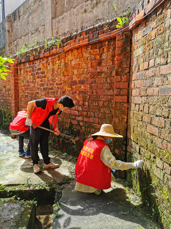 鏟掉青苔,復(fù)磚紅墻面