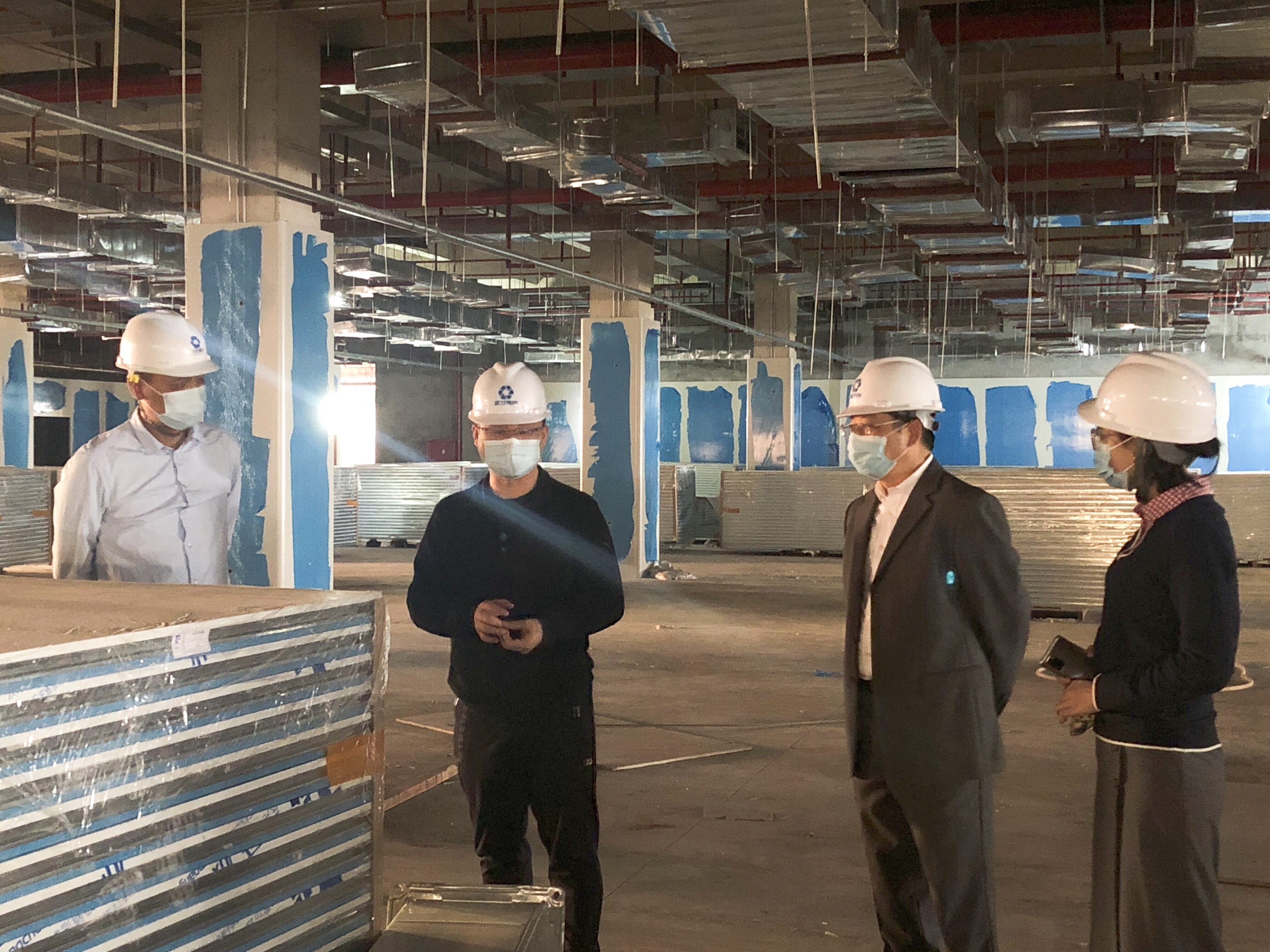 綠港集團黨委書記、董事長龔國強,黨委委員、副總經(jīng)理陸羿冰到瑞聲三期裝修項目檢查工程進度
