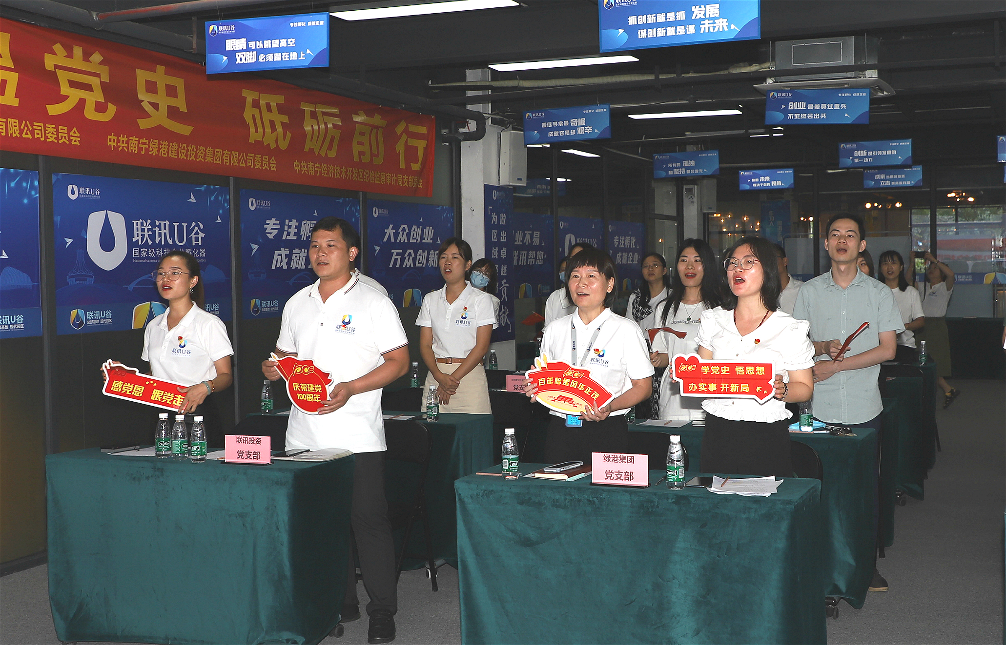 為慶祝建黨100周年,繼承和發(fā)揚黨的優(yōu)良傳統(tǒng)和作風,扎實推進黨史學習教育,推動學習教育走深走實,5月26日,綠港集團黨委、廣西聯(lián)訊黨委、南寧經開區(qū)紀檢監(jiān)察審計局黨支部聯(lián)合舉辦“重溫黨史 砥礪前行”主題黨建共建活動,綠港集團、廣西聯(lián)訊、南寧經開區(qū)紀檢監(jiān)察審計局的黨員代表、發(fā)展對象、入黨積極分子共35人參加了活動。