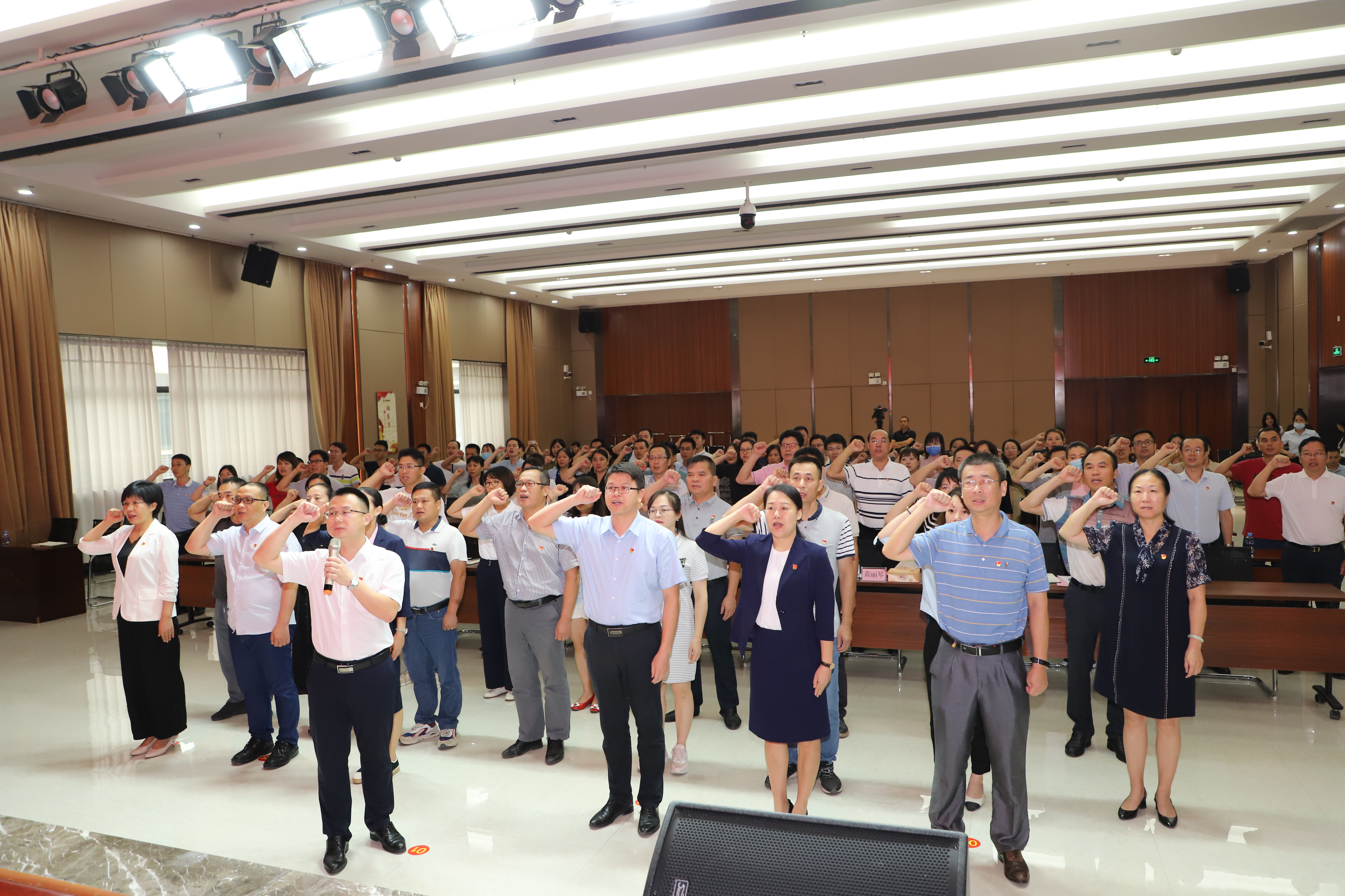 “我志愿加入中國(guó)共產(chǎn)黨,擁護(hù)黨的綱領(lǐng),遵守黨的章程,履行黨員義務(wù)……”迎著黨旗、舉起右拳,在集團(tuán)黨委書記、董事長(zhǎng)龔國(guó)強(qiáng)的帶領(lǐng)下,綠港集團(tuán)7名新入黨黨員莊嚴(yán)地宣讀了入黨誓詞、98名老黨員同志重溫了入黨誓詞,大家在入黨誓詞中回顧初心,銘記宗旨,接受了一次心靈的洗禮。
