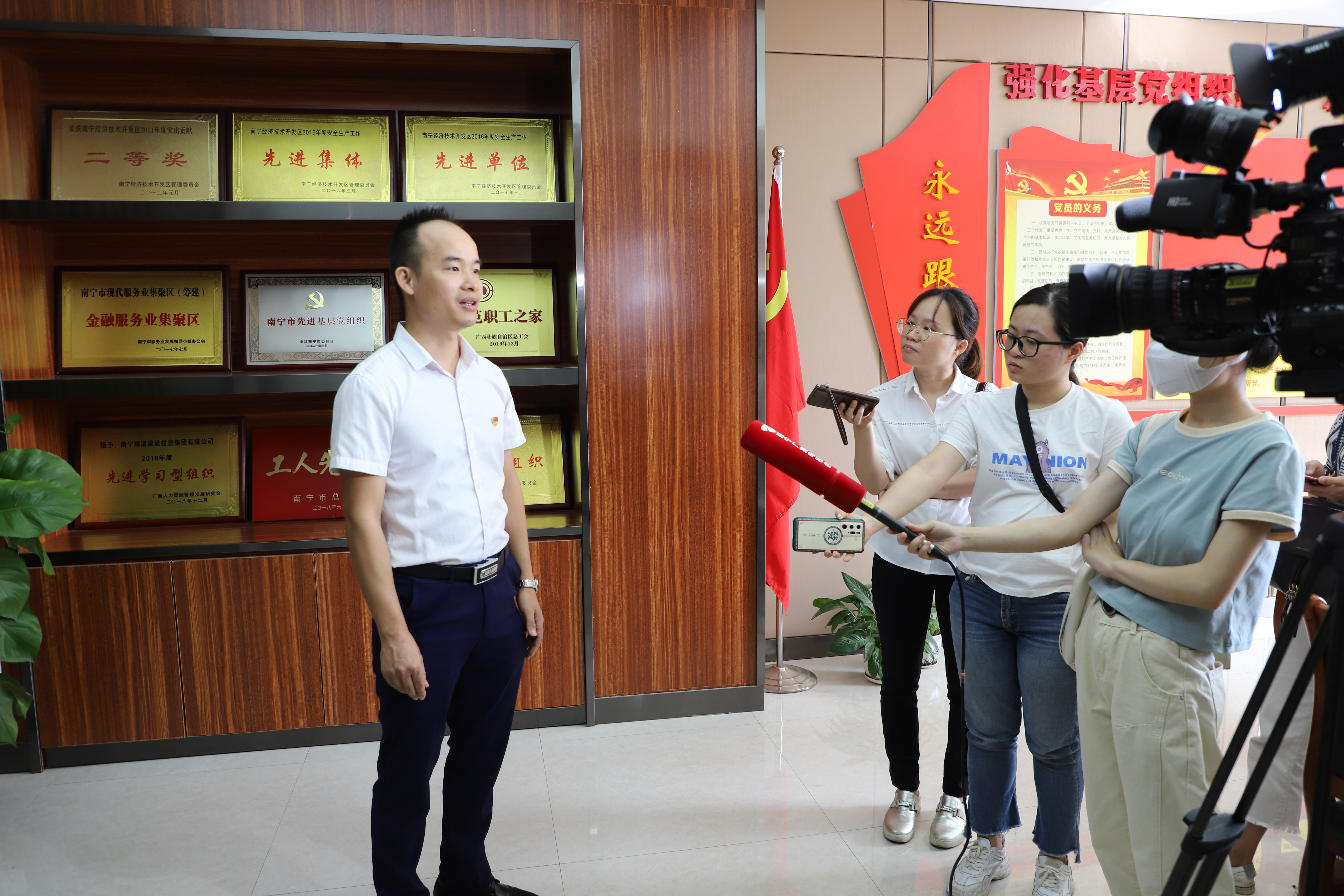 9月22日,南寧日?qǐng)?bào)、南寧電視臺(tái)、南寧晚報(bào)及南寧新聞網(wǎng)記者來到綠港集團(tuán)對(duì)楊烈同志進(jìn)行了采訪,同時(shí)詳細(xì)了解綠港集團(tuán)深入開展學(xué)習(xí)強(qiáng)國學(xué)習(xí)活動(dòng)提升黨員綜合素質(zhì)的經(jīng)驗(yàn)做法。他在接受采訪時(shí)表示:“‘學(xué)習(xí)強(qiáng)國’的內(nèi)容豐富多彩,涉及的面也很廣,為我們日常的學(xué)習(xí)提供了一個(gè)很好的平臺(tái)和內(nèi)容。‘學(xué)習(xí)強(qiáng)國’平臺(tái)為我們黨員提供了一個(gè)可移動(dòng)的學(xué)習(xí)空間,大家可以隨時(shí)隨地進(jìn)行學(xué)習(xí),也可以根據(jù)自己的興趣愛好挑選板塊學(xué)習(xí)。在平臺(tái)上大家可以相互看到自己的積分和排名,無形中形成了一種相互監(jiān)督、相互鼓勵(lì)、你追我趕的學(xué)習(xí)氛圍。今后我將會(huì)一如既往通過‘學(xué)習(xí)強(qiáng)國’這個(gè)平臺(tái)提高理論水平,增強(qiáng)干事創(chuàng)業(yè)能力,為社會(huì)主義事業(yè)貢獻(xiàn)自己的綿薄之力。”