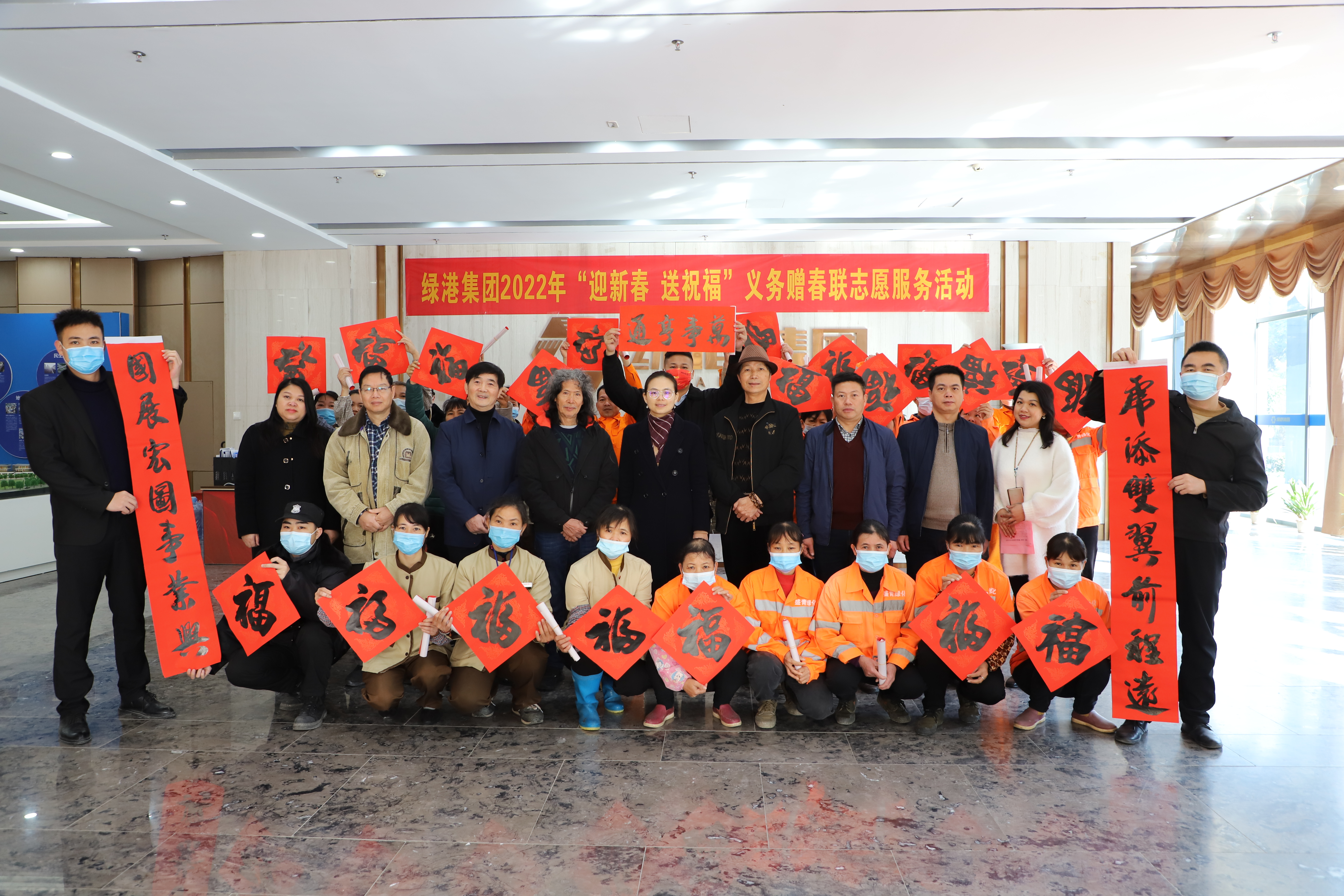 寫春聯(lián)送祝福,濃濃墨香迎新年。為弘揚優(yōu)秀傳統(tǒng)文化,營造歡樂祥和、喜慶熱烈的濃厚節(jié)日氛圍,1月17日-19日,綠港集團黨委、綠港集團工會組織開展2022年“迎新春·送祝?!绷x務(wù)贈春聯(lián)志愿服務(wù)活動。
