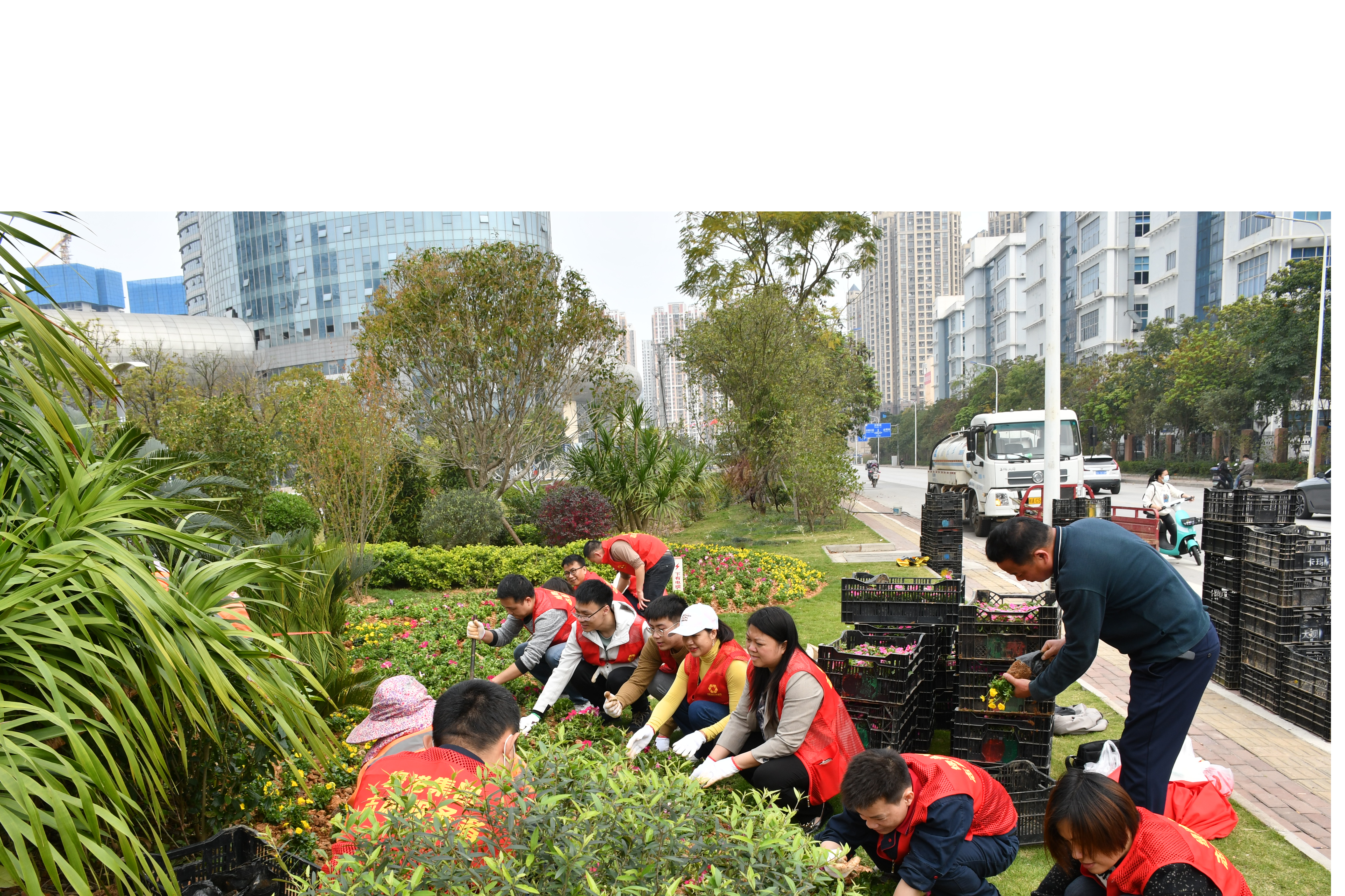 活動現(xiàn)場,志愿者們熱情高漲,在園林種植技術(shù)人員講解種植要點后,大家兩人一組,開始種植。挖坑、栽苗、培土、踩實,有序地將一顆顆綠植栽種入土,活動現(xiàn)場一片熱火朝天景象。經(jīng)過一個上午的辛勤勞作,花圃里就種滿了2000多棵綠植,連片規(guī)范的花草錯落有致、迎風(fēng)挺立,呈現(xiàn)出一派生機(jī)盎然的景象,為城市增添了一抹新綠。