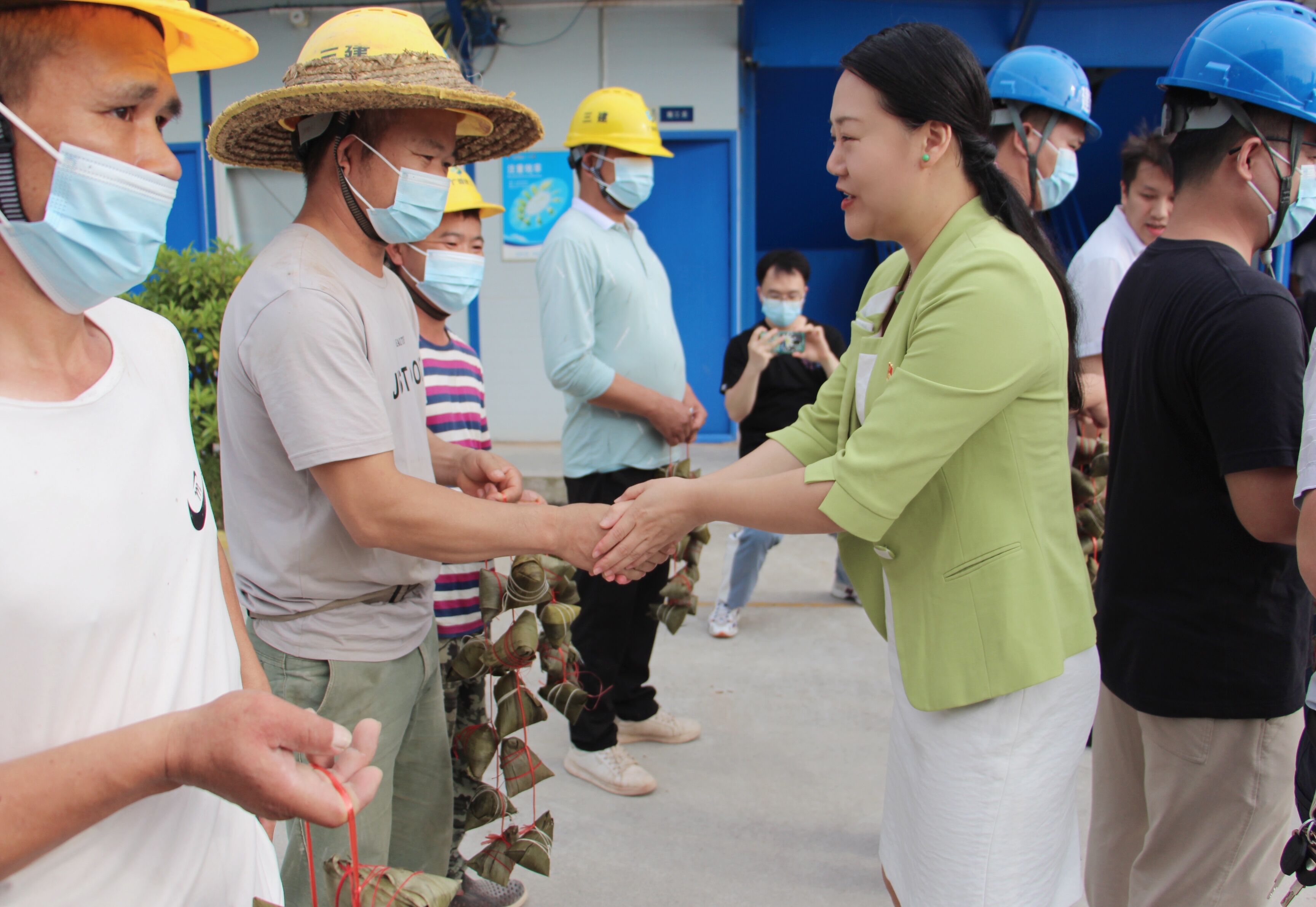 關(guān)心關(guān)懷進(jìn)工地,濃濃粽情暖人心。座談會后,此次聯(lián)建的各黨支部相關(guān)領(lǐng)導(dǎo)共同慰問了項(xiàng)目一線工人,為他們送去粽子等慰問品和最真摯的節(jié)日問候,感謝一線工人的辛勤勞動、敬業(yè)付出以及為綠港?金陽產(chǎn)業(yè)城等南寧市重點(diǎn)項(xiàng)目建設(shè)做出的貢獻(xiàn)。慰問中,綠港集團(tuán)黨委委員、副總經(jīng)理黃麗琴關(guān)切地詢問現(xiàn)場工人勞動安全保障情況和防疫情況,叮囑大家要注意勞動安全,防疫安全,堅(jiān)持安全與生產(chǎn)兩手抓兩不誤,希望大家繼續(xù)保持昂揚(yáng)的斗志,以高度的責(zé)任感和飽滿的工作熱情投身到項(xiàng)目建設(shè)中,為經(jīng)開區(qū)社會經(jīng)濟(jì)高質(zhì)量發(fā)展作出貢獻(xiàn)。
