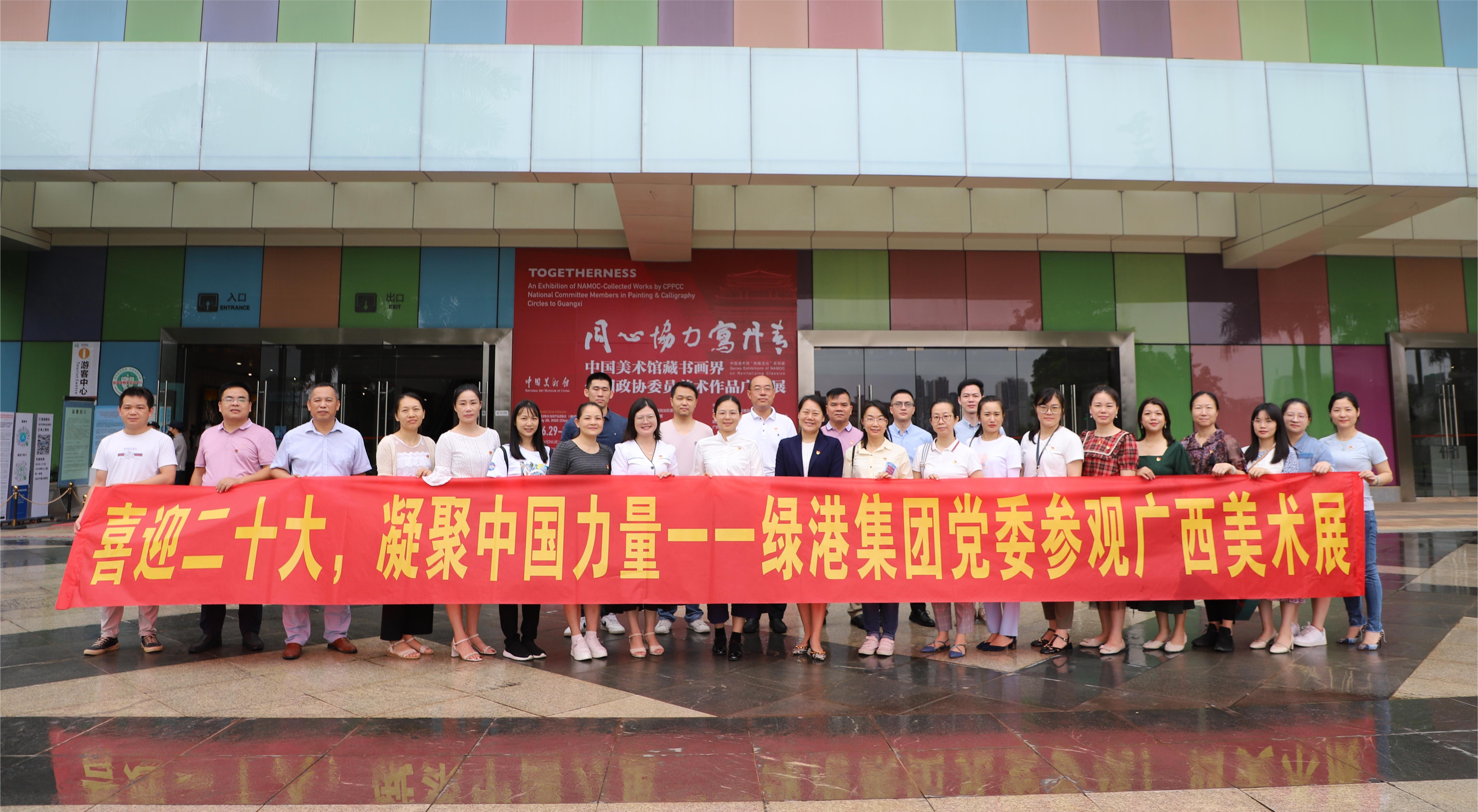 為進(jìn)一步弘揚(yáng)中國精神,凝聚中國力量,以北部灣經(jīng)濟(jì)區(qū)各城市的發(fā)展變遷來鼓舞和激勵(lì)黨員干部,7月6日,綠港集團(tuán)黨委組織集團(tuán)機(jī)關(guān)一、二黨支部40名黨員前往廣西美術(shù)館參觀“同心協(xié)力寫丹青——中國美術(shù)館藏書畫界全國政協(xié)委員美術(shù)作品廣西展”及“迎接黨的二十大召開——廣西北部灣海絲路風(fēng)情水彩畫展”。