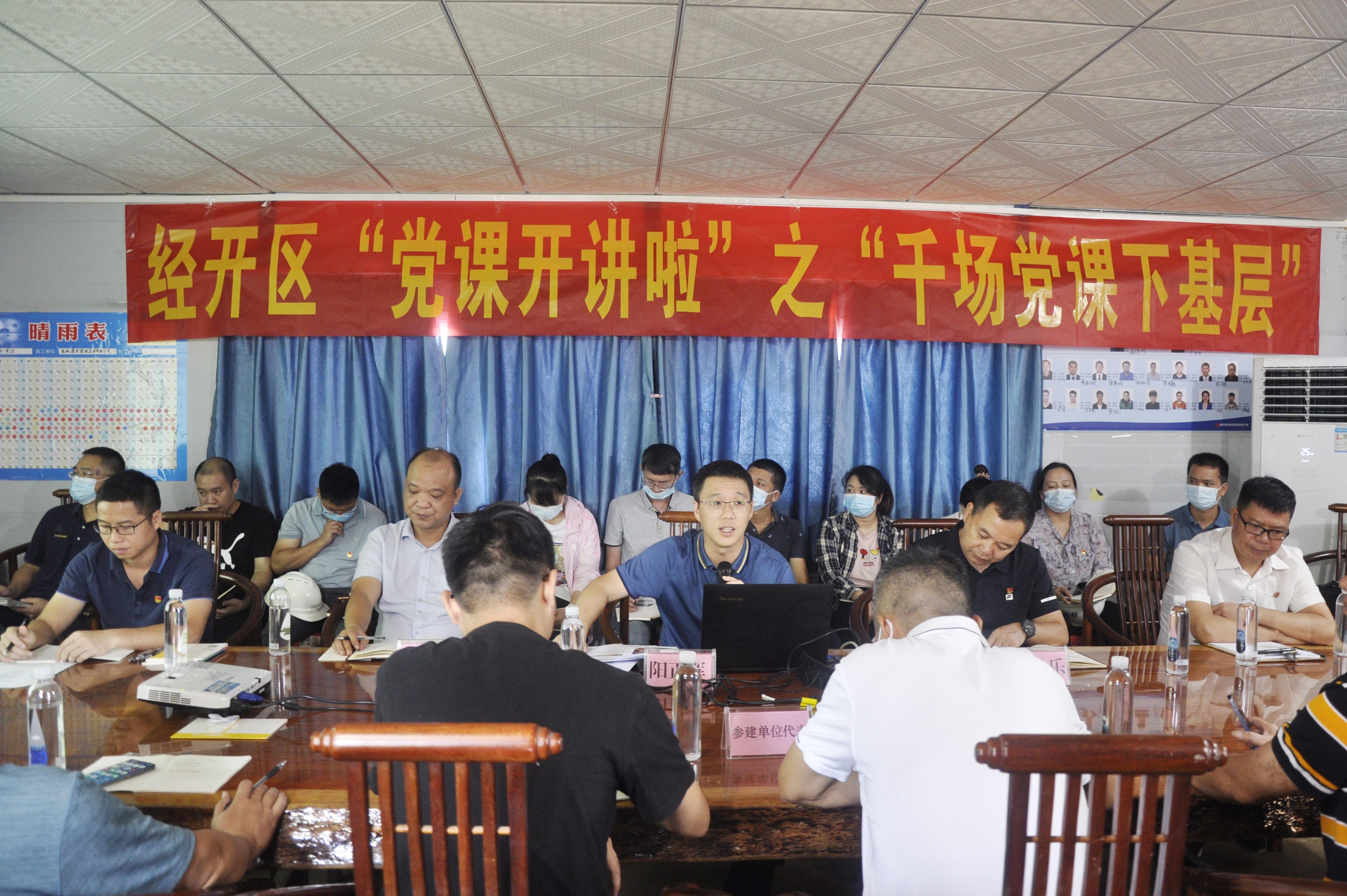 9月22日,科巨公司黨支部積極響應(yīng)經(jīng)開區(qū)“黨課開講啦”千場黨課下基層的號召,結(jié)合公司業(yè)務(wù)實際,深入?yún)芹祖?zhèn)3號路南延項目部開展“主題黨課進工地、提升管理增效益”主題活動。集團副總經(jīng)理、科巨公司黨支部書記陽正輝為科巨公司黨支部全體黨員、吳圩片區(qū)在建項目部分參建單位代表約40人上了一堂接地氣又深入人心的黨課。