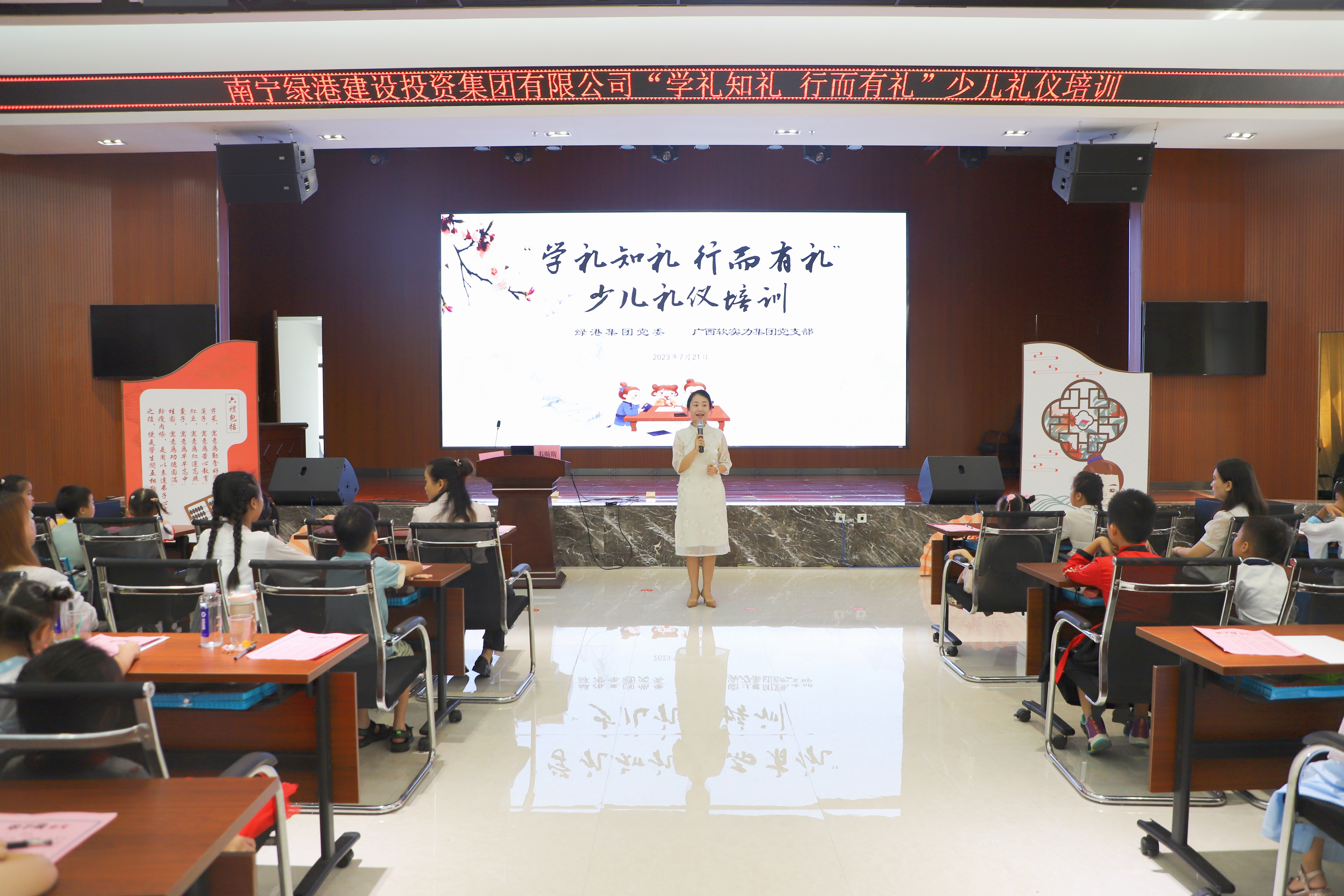 為深化拓展新時代文明實踐活動,更好地傳承和弘揚優(yōu)秀中華文化,加強(qiáng)未成年人思想道德教育,讓孩子們從小講文明、知禮儀,提升素養(yǎng)。7月21日,綠港集團(tuán)黨委、工會、關(guān)工委聯(lián)合組織開展“學(xué)禮知禮·行而有禮”少兒禮儀培訓(xùn)為主題的暑期學(xué)堂活動。集團(tuán)黨委委員、副總經(jīng)理黃麗琴致辭。活動共有60多位職工及少兒參加。